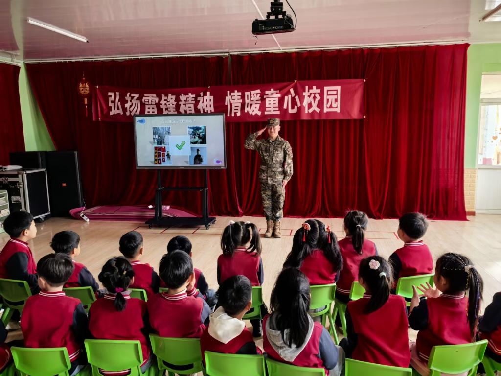 志愿者化身主持人,以幽默生动语言开启主题宣讲。志愿者们用浅显易懂的语言讲述了雷锋助人为乐的小故事,让孩子们轻松读懂雷锋精神的内涵。退伍军人志愿者更是现场分享军旅生涯与保家卫国的亲身经历,用真实鲜活的故事,向孩子们传递责任与担当的力量,在幼小的心灵里种下家国情怀的种子。